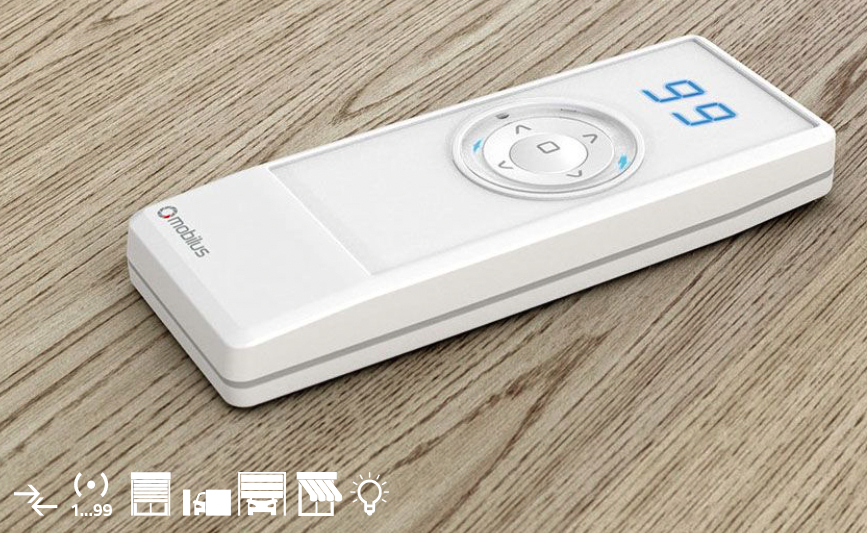 MOBILUS COSMO | HM to nowoczesny, sterowany za pomocą przycisków pilot 99-kanałowy obsługujący do 99 urządzeń np.: bram wjazdowych i garażowych, rolet, żaluzji, markiz, oświetlenia, odbiorników elektrycznych typu ON/OFF.