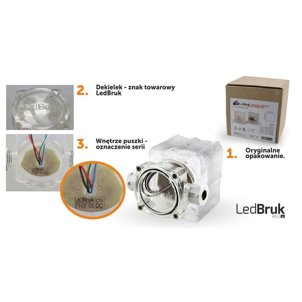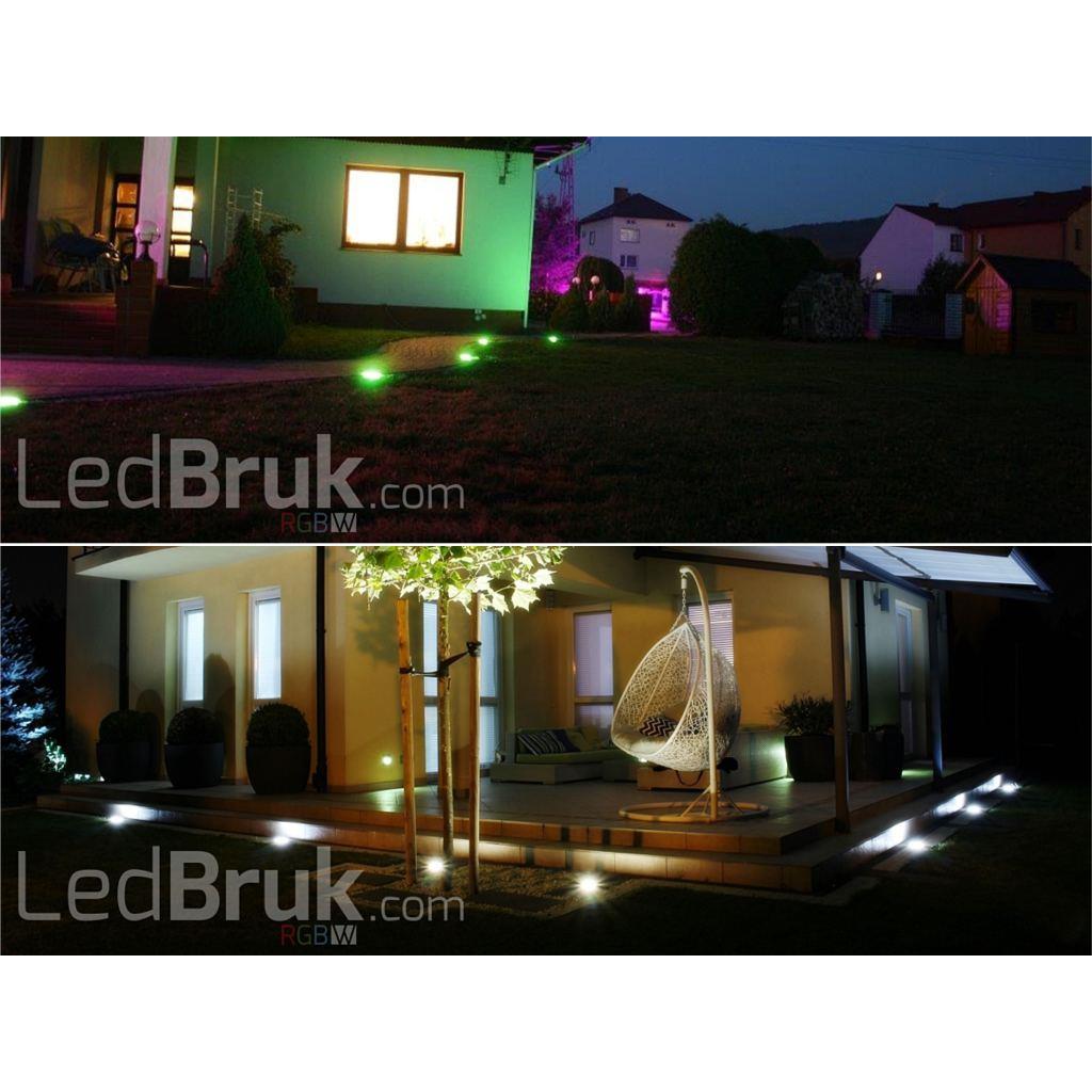 Model: Ledstone - Lampa Ogrodowa LED RGBW biała ciepłaMoc: 5,5WStrumień świetlny: 230lmNapięcie zasilania: 24V DCBarwa światła: RGB+W biała ciepła (3200K)Ściemnianie: tak, metoda PWMProducent oprawy: LedBruk Sp. z o.o.Producent diod: Cree, IncTyp klosza: mlecznyWymiary: 15 x 9,5 x 8cmSzczelność: IP68Trwałość/żywotność: 124.000hCertyfikaty: CE, RoHS Sposób łączenia: Mufa hermetyczna IP68